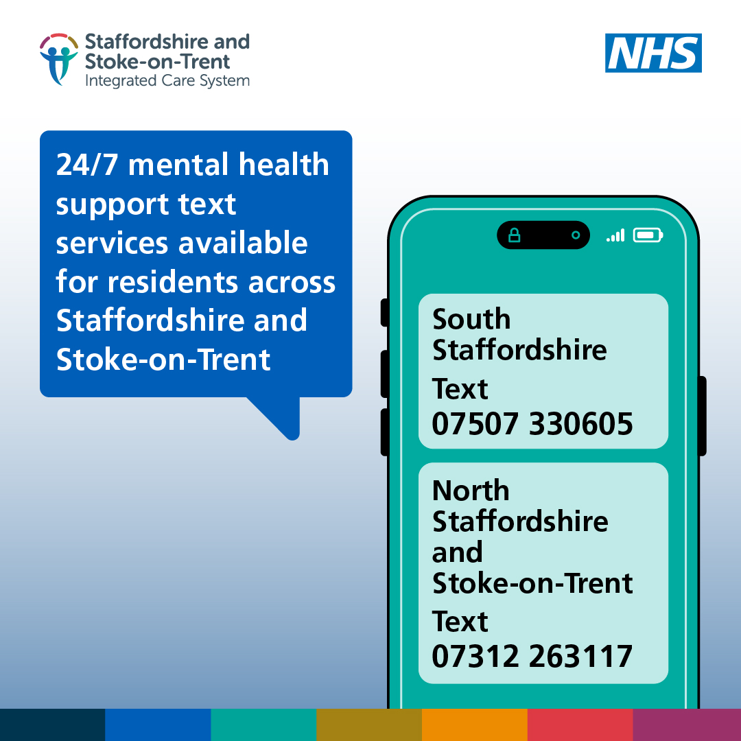 The text services are delivered by Midlands Partnership University NHS Foundation Trust (MPFT) and North Staffordshire Combined Healthcare NHS Trust (NSCHT), commissioned by Staffordshire and Stoke-on-Trent Integrated Care Board (ICB).